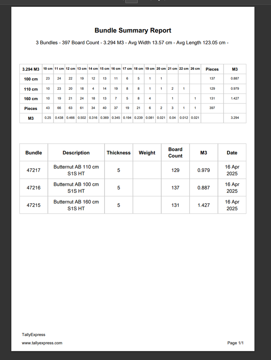 All of your data is available online with pictures of the bundles. This data can be transferred to your management system, to clients or to suppliers in case of discrepancies.